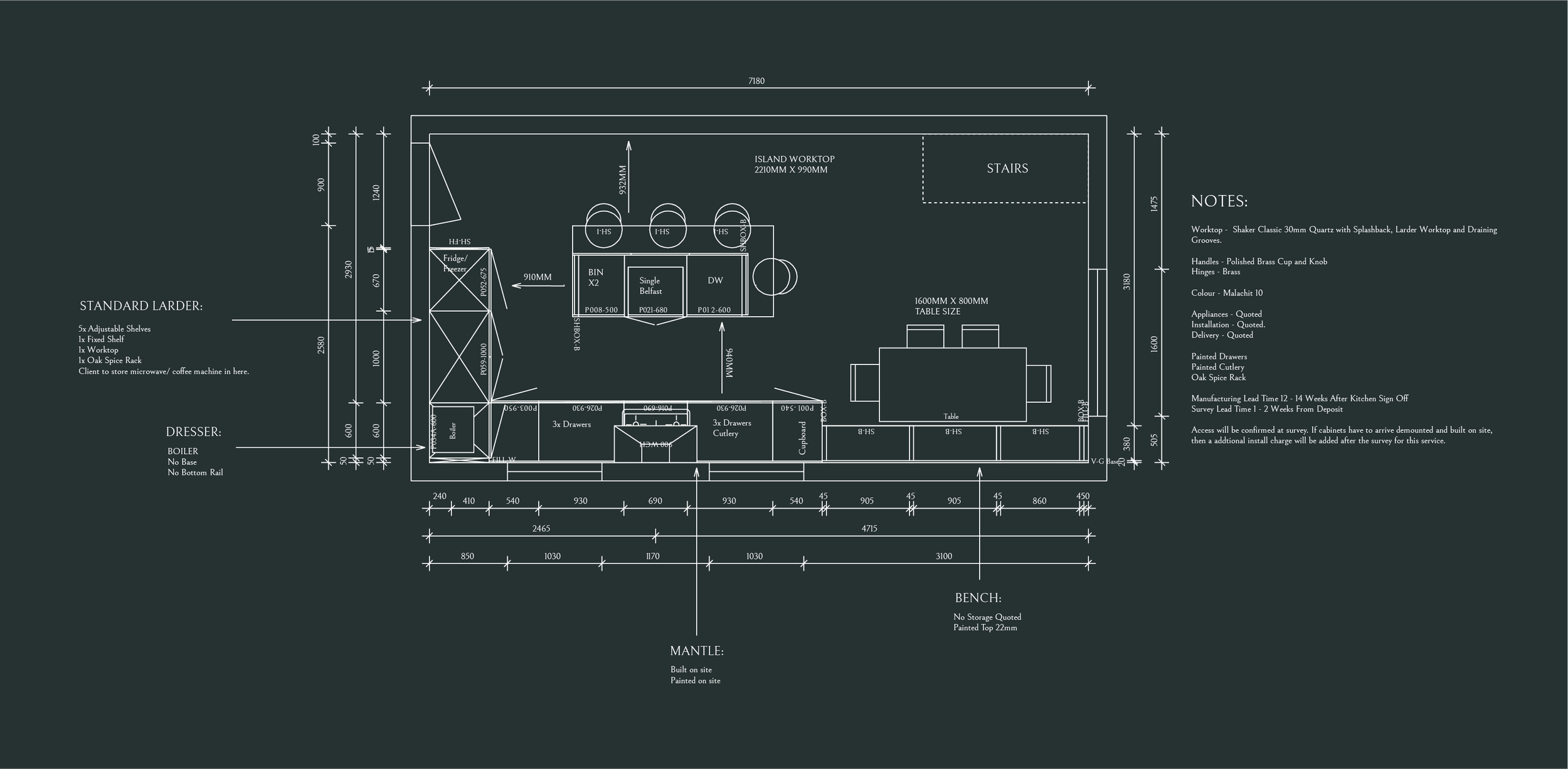Working with our trusted CAD designer, we develop layout options, cabinet configurations, finishes, and storage solutions. This stage allows you to explore different approaches and understand how the kitchen will function day to day.
